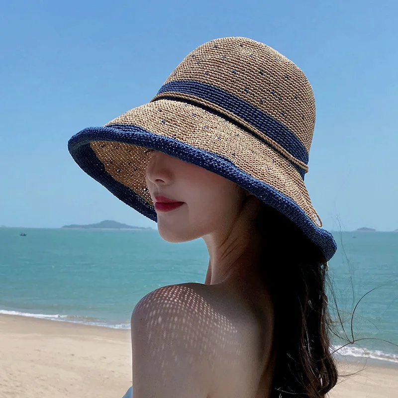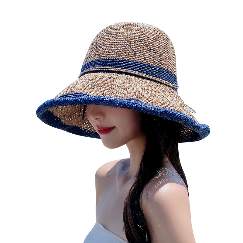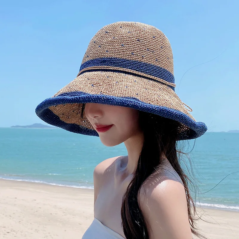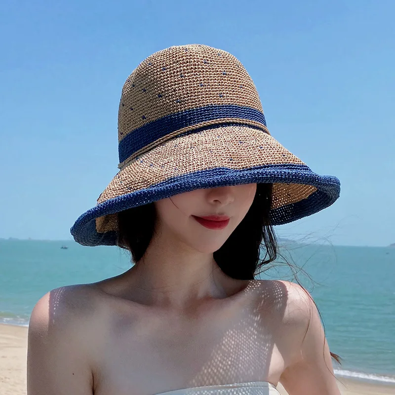 Wholesale High Quality Summer Hat Women Vintage Wide Brim Female Dome sun Visor Beach hat Straw Hat Women Patchwork